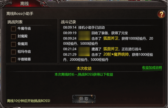 3.上一次挂机收益未领取时,无法获得新的收益,上线后请及时领取。