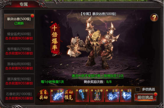 3、BOSS为个人归属,玩家每天O点恢复3次归属次数,最多储存6次;