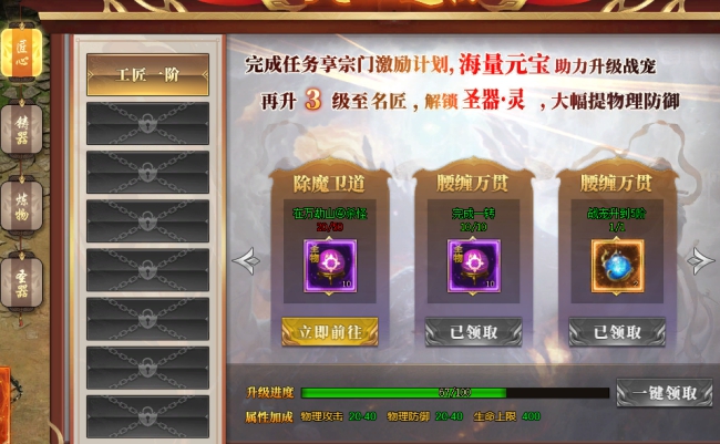 玄兵骑战中核心功能,只要玩家跟随主线免费开启,升级只需完成简单目标,即可获得天工特殊能力