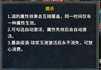 玩家大大们还需要注意酒的属性无法叠加哦,同一时间只能生效一种酒的属性