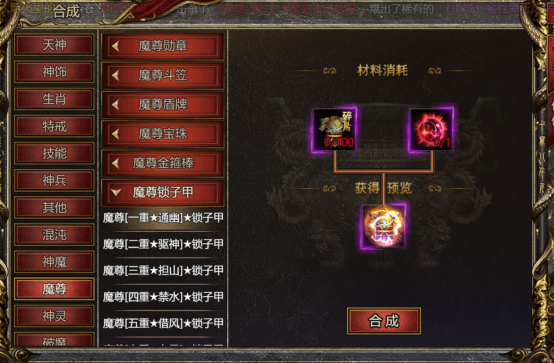 收集到足够数量的魔尊装备碎片后,玩家可以在合成界面选择对应的碎片进行合成,合成后将获得魔尊锁子甲。同时,在第三大陆的西游秘境中的造神界面,玩家还可以进行锁子甲融合,提升魔尊锁子甲的属性和战斗力。