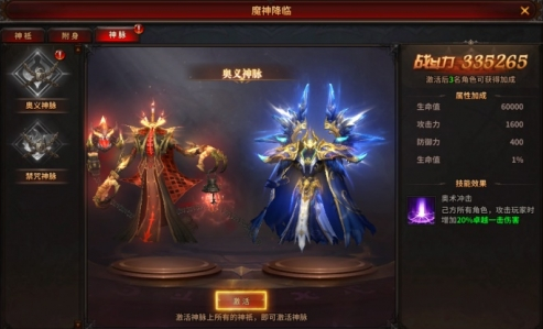 4)激活指定的数个魔神神祇,可激活对应的魔神神脉,获得神脉属性及神脉技能